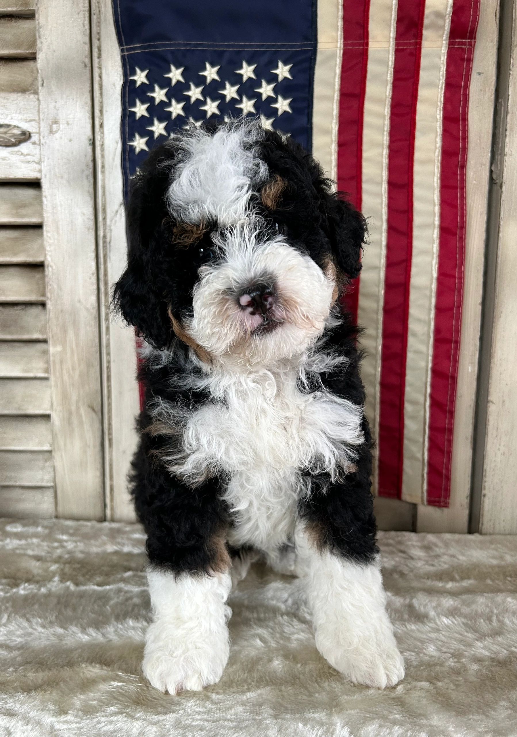 An F1b Mini Bernedoodle is the result of an F1 (first generation) Mini Bernedoodle being "back crossed" to a Mini Poodle. The result is a puppy with more poodle traits, * ideally, a more curly coat and a smaller body frame. (Approx 30 pounds)